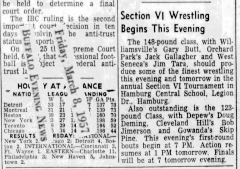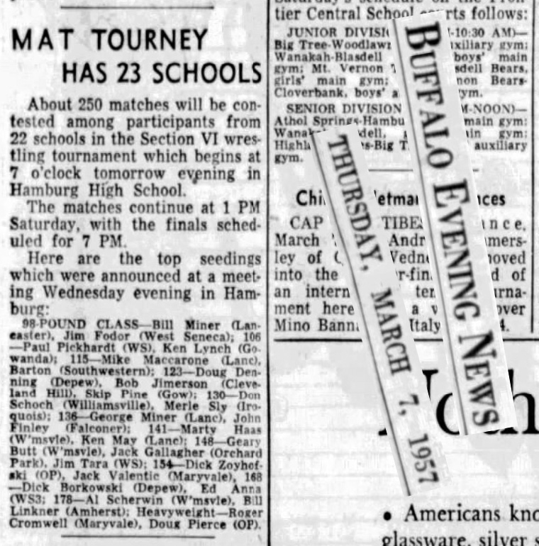 Don Schoch (Williamsville (Class AA)) > Bob Bjerre (Hamburg) decision