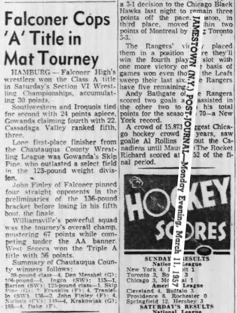 Skip Pine (Gowanda) > Dale Franklin (Falconer (Class A)) decision