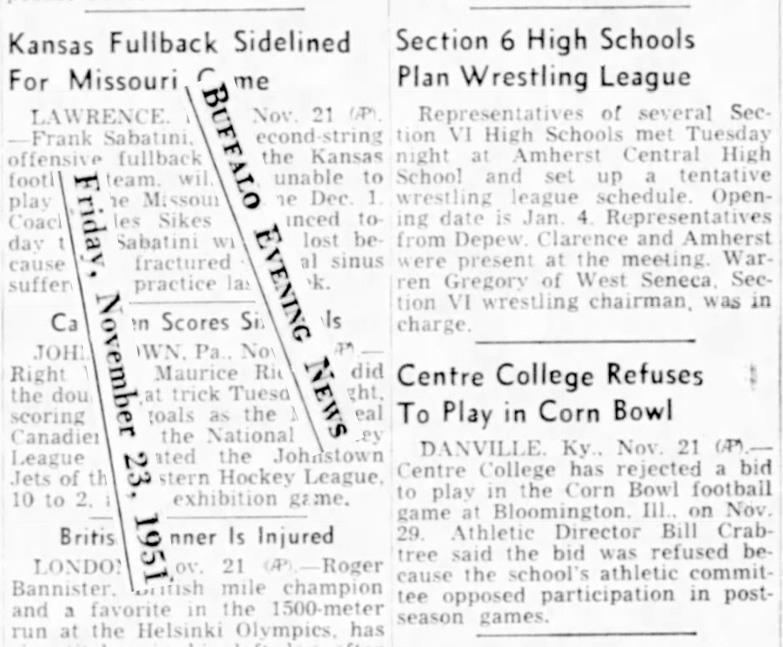 120 Donald Worth (Amherst) > Milt Bartlett (Hamburg) fall