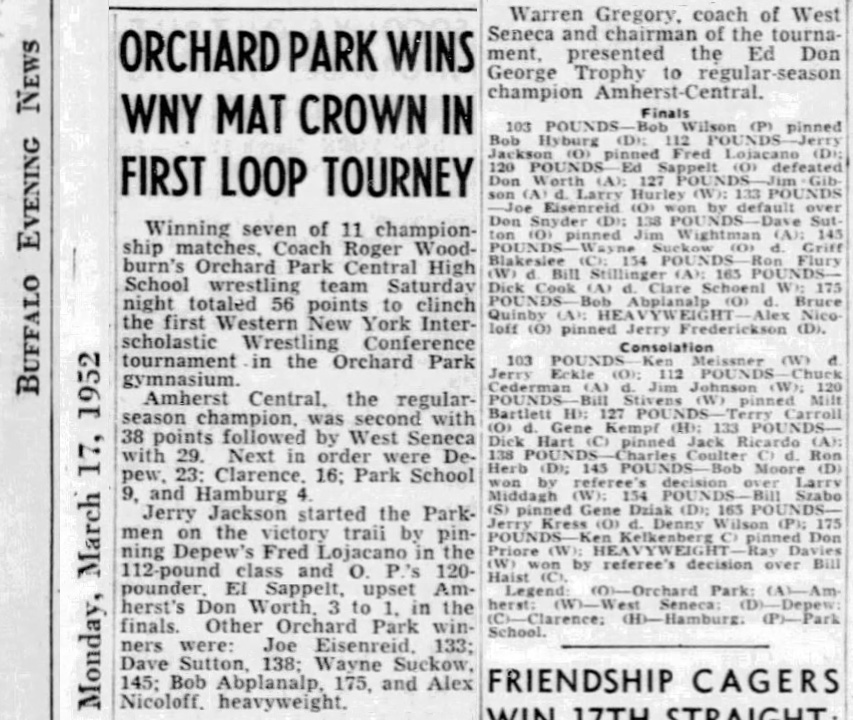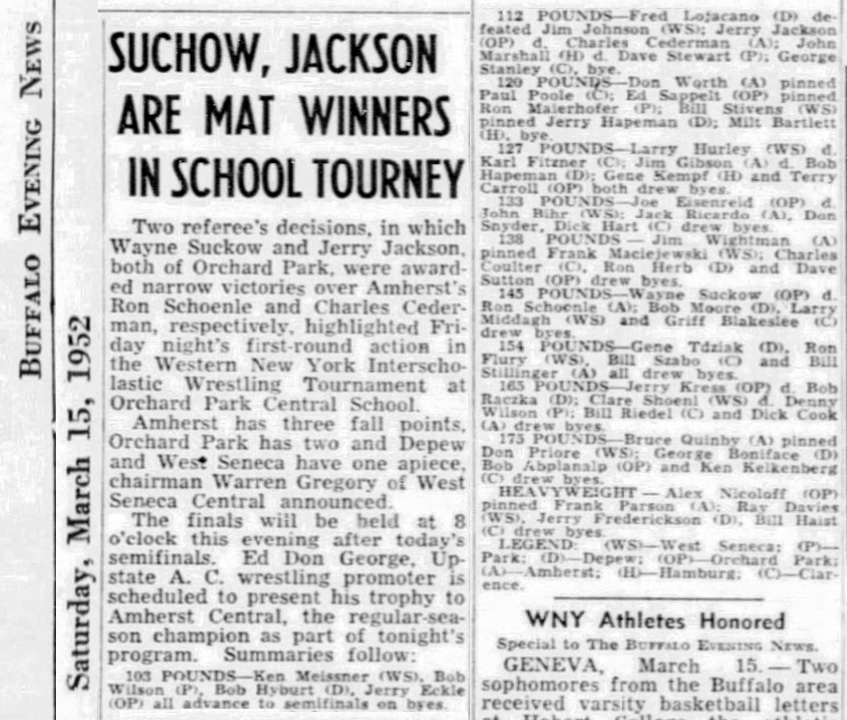 HWT Gerald Fredericksen (Depew) > Bill Haist (Clarence) fall