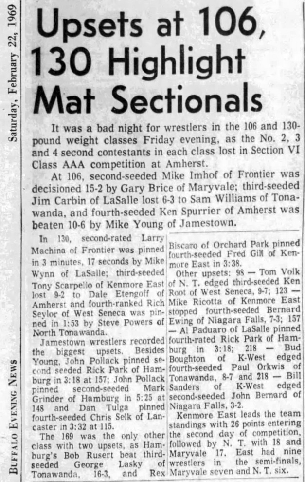 Doug LeRoy (Maryvale) > Andy Beutner (Tonawanda) decision 5-2