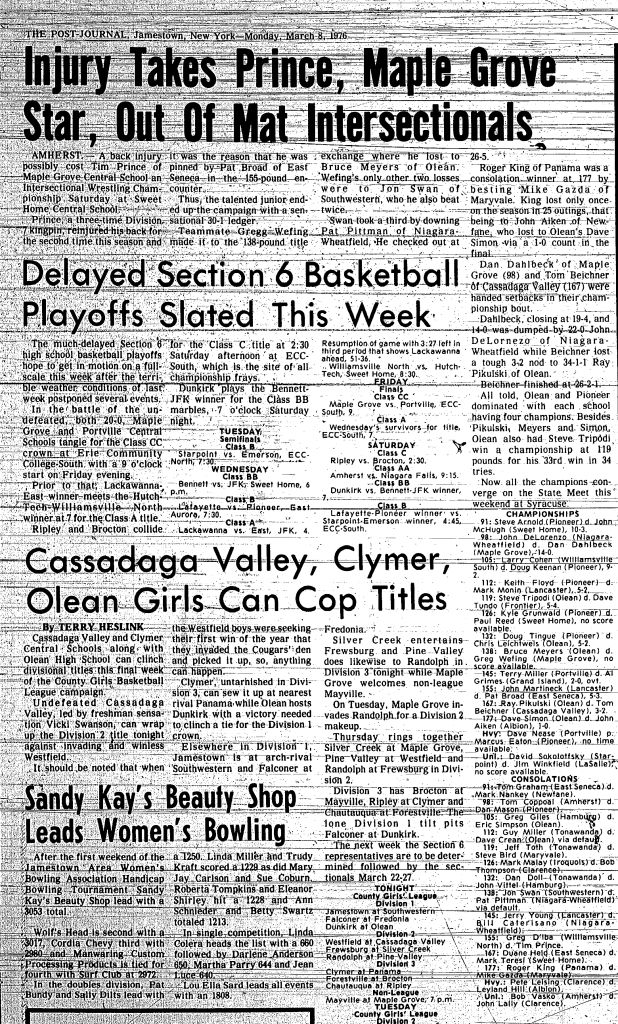 Doug Tingue (Pioneer) > Chris Leichtweis (Olean) decision 3-1