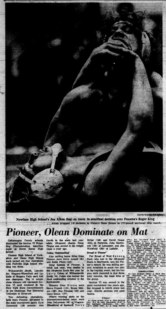 Dave Simon (Olean) > Jon Aikin (Newfane) decision 1-0