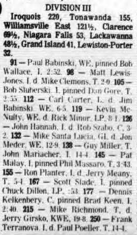 Bob Sluberski (Iroquois) > Dan Gore (Tonawanda) fall 2:55