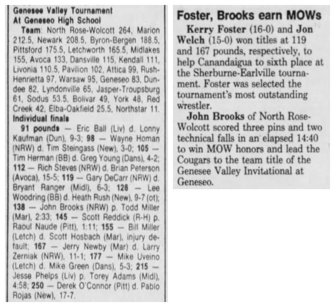 Jerry Newby (Marion) > Larry Zerniak (NRW) decision 3-0