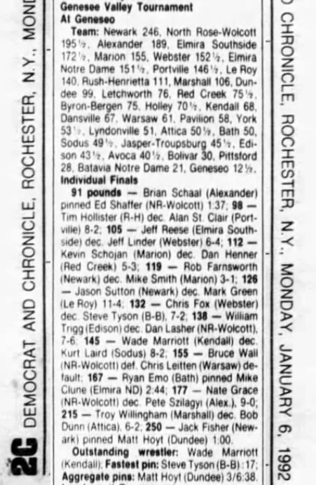 Wade Marriott (Kendall) > Kurt Laird (Sodus) decision 8-2