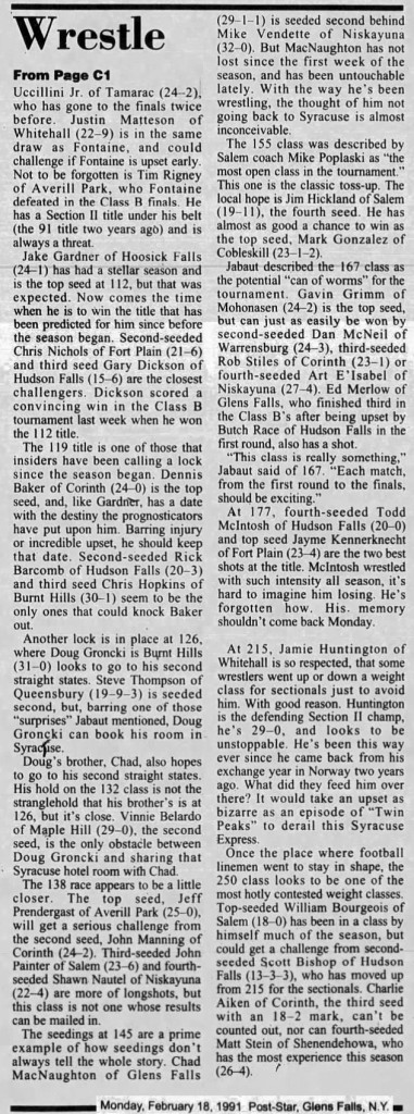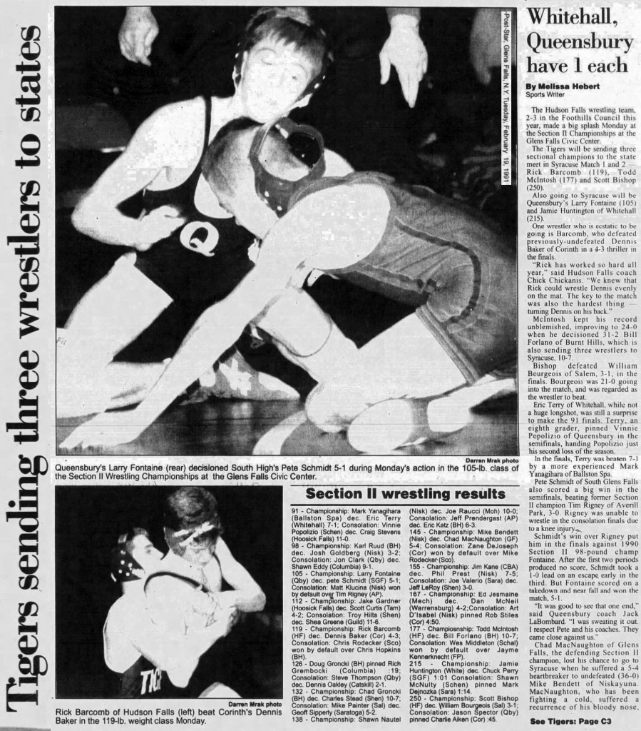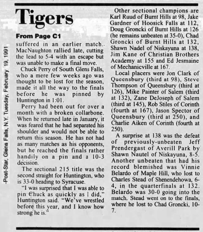 Ed Jesmaine (Mechanicville) > Dan McNeil (Warrensburg) decision 4-2