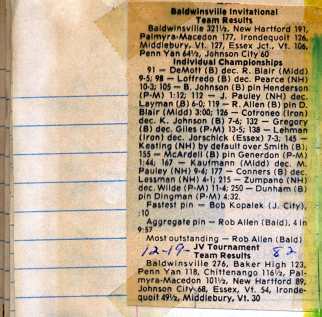 Rob Allen (Baldwinsville) > Darren Blair (Middlebury) fall 3:00