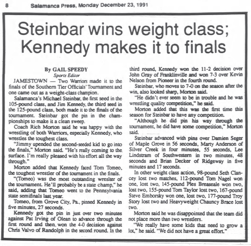 Mike Steinbar (Salamanca) > Brian Decker (Ridgway) fall 5:17