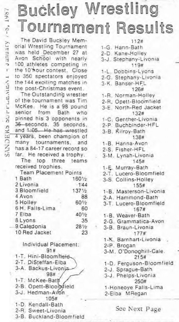 13th Annual David L. Buckley Memorial Wrestling Tournament