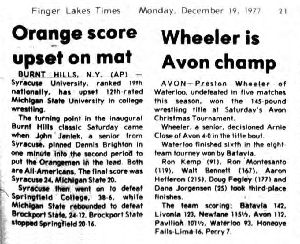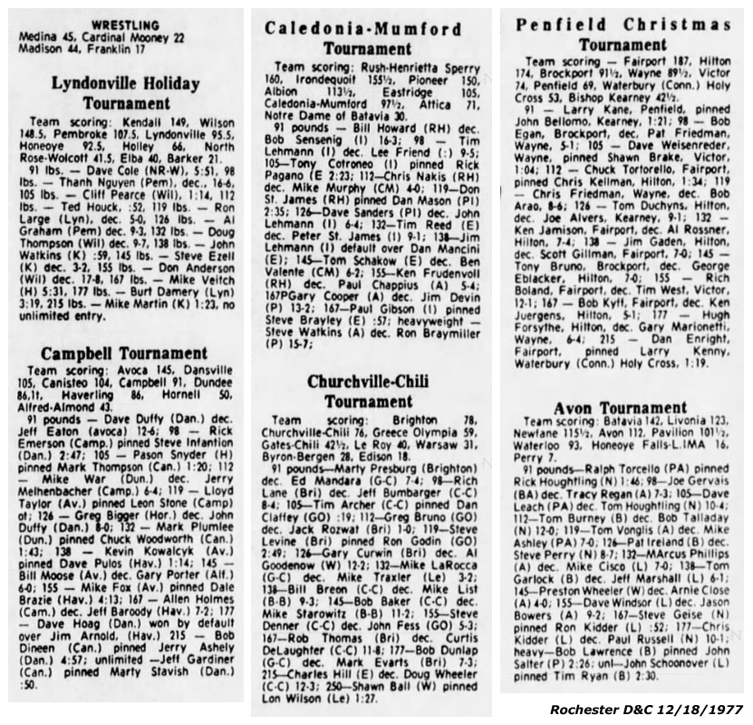 Tom Burney (Batavia) > Bob Talladay (Newfane) superior decision 13-0
