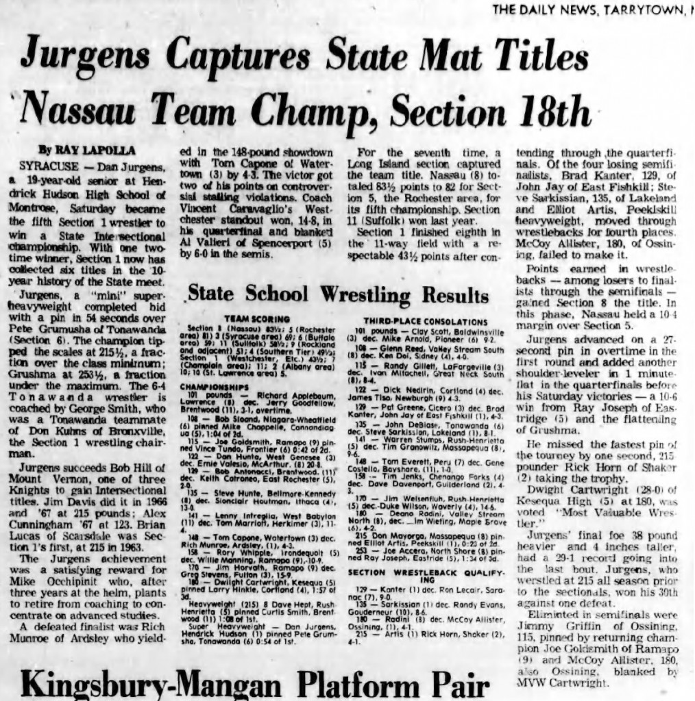 167 Jim Horvath (Ramapo/Section IX) > Duke Wilson (Waverly/Section IV) major decision 17-7