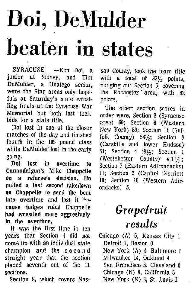 105 Mike Chappelle (Canandaigua/Section V) > Ken Doi (Sidney/Section IV) judge's decision 4-4
