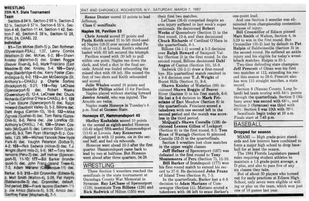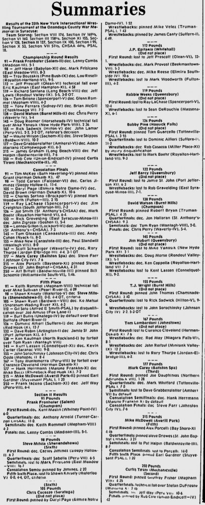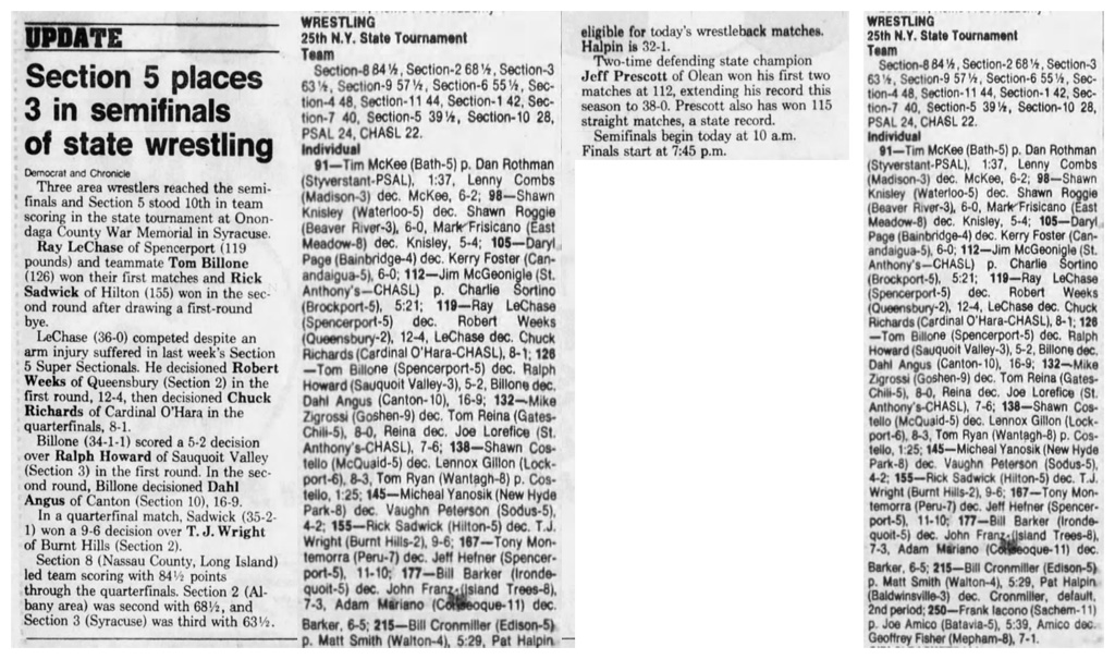 167 Wayne Wilson (Sachem/Section XI) > Tony Montemorra (Peru/Section VII) decision 6-4