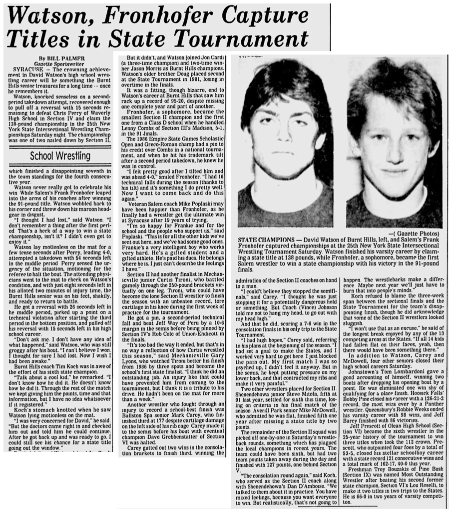 98 Mark Frisicano (EM/Section VIII) > Steve Mitola (Shenendehowa/Section II) decision 13-7