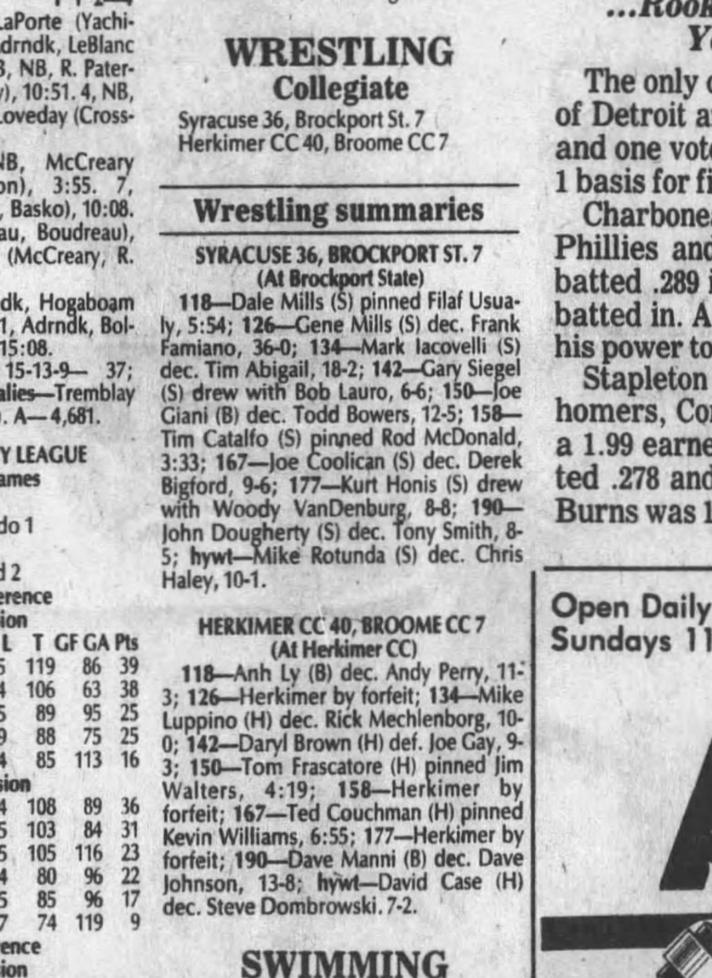 Tim Catalfo (SU) > Rod McDonald (Brockport) fall 3:33