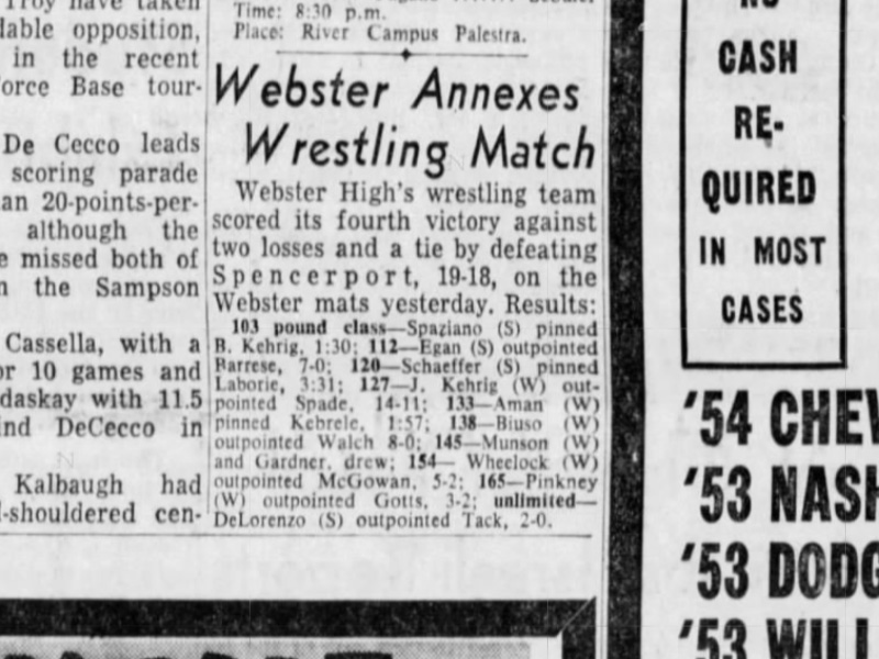 127 John Kehrig (Webster) > Filbert Spade (Spencerport) decision 14-11