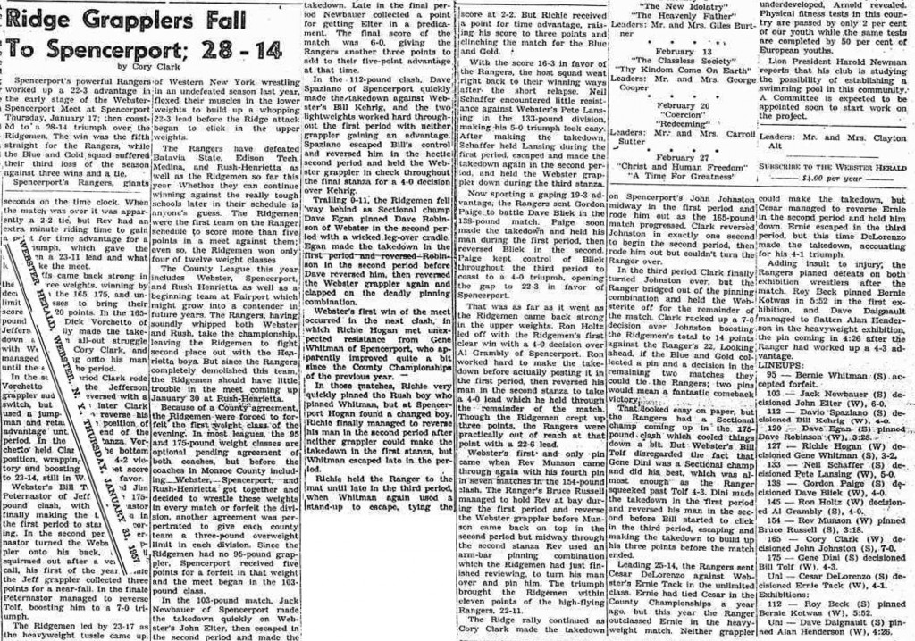 Richie Hogan (Webster) > Eugene Wittman (Spencerport) decision 3-2