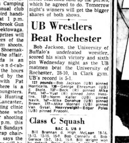 Bill Yust (UR) > John Hesslink (UB) fall 4:52