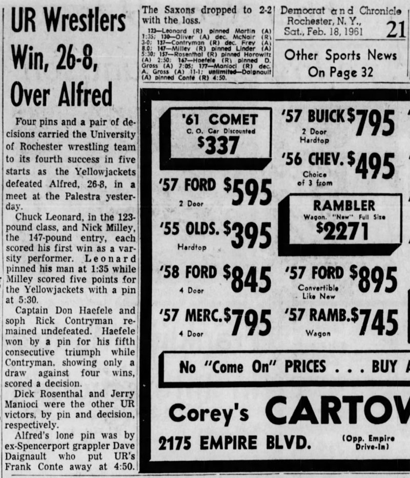 Dick Rosenthal (UR) > Alex Horowitz (AU) fall 2:50