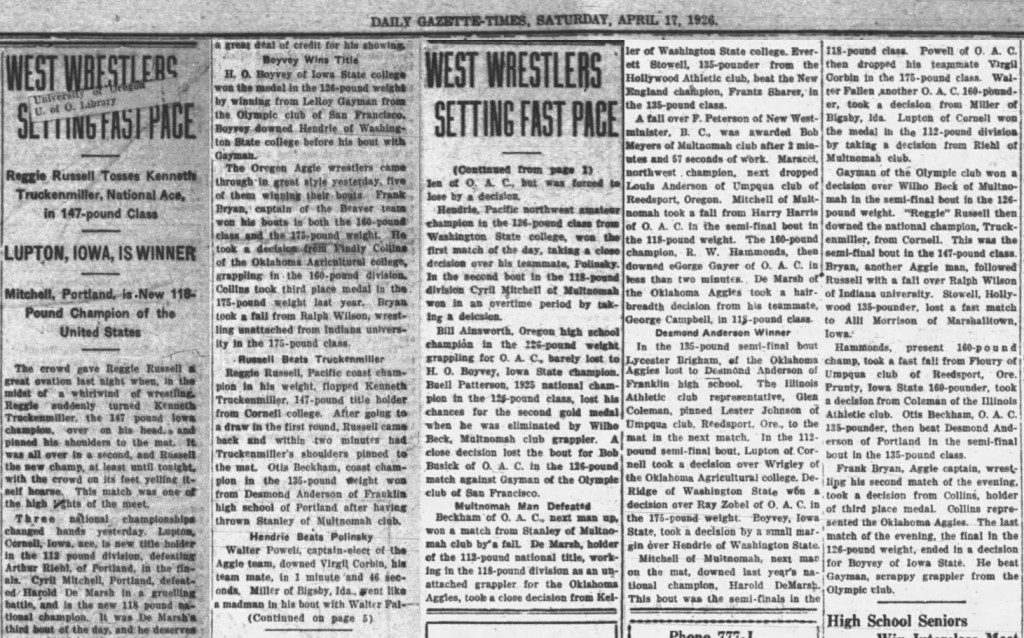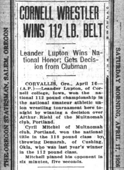 Cyril Mitchell (MAC) > Harold DeMarsh (OSU) fall 6:05