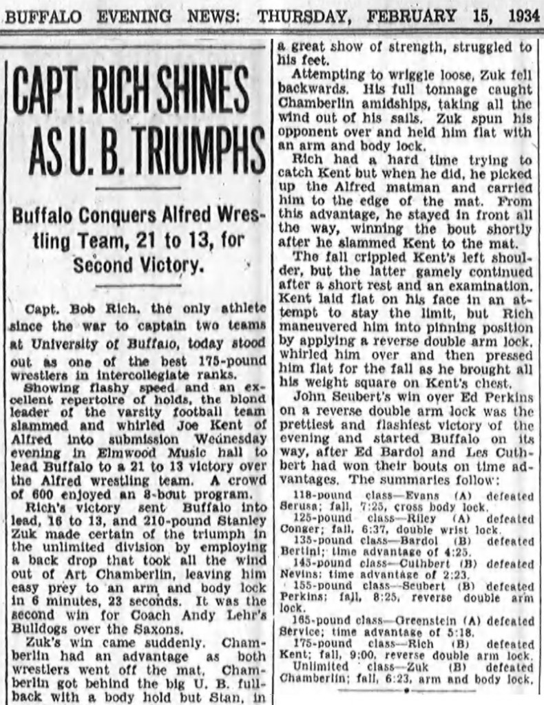 Bob Rich (UB) > Kent (AU) fall 9:00
