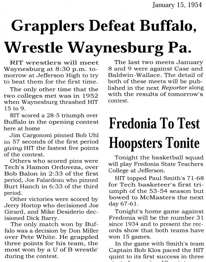 Jim Cargnoni (RIT) > George Movesian (UB) fall 2:34