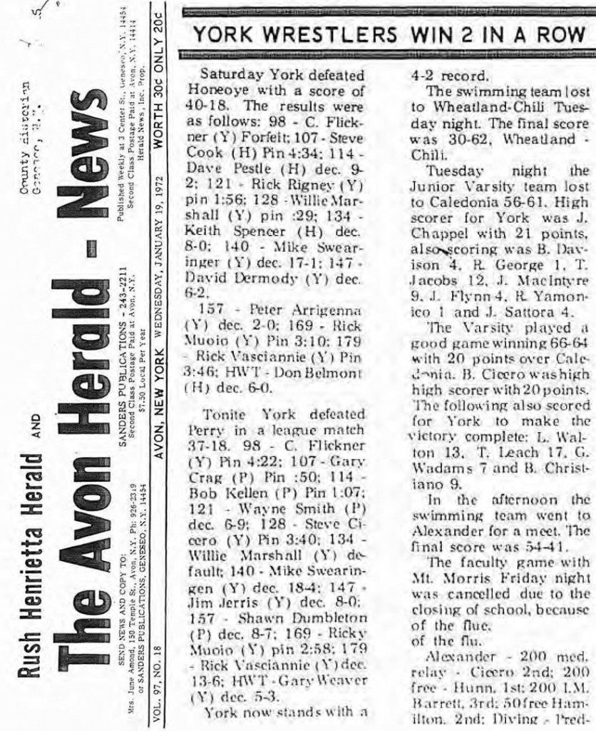 Mike Swearingen (York) > Al Wood (Honeoye) decision 16-1
