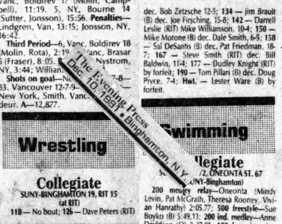 Darrell Leslie (RIT) > Mike Williamson (BU) decision 10-4