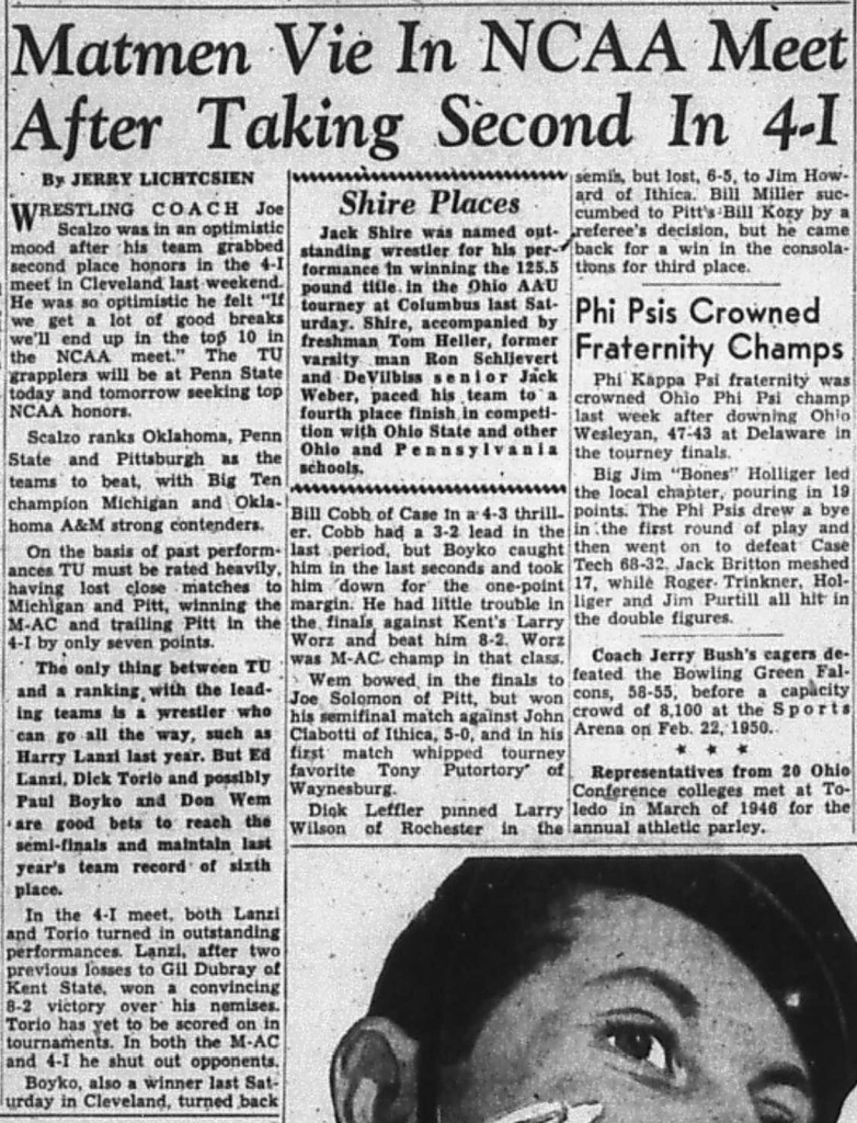 University of Pittsburgh [PA] 38, University of Toledo [OH] 31, Kent State University [OH] 17, Lock Haven University [PA] 16, Case Institute of Technology [OH] 11, Ithaca College [NY] 8, University at Buffalo [NY] 8, Hofstra University [NY] 6, Rochester Institute of Technology [NY] 4, SUNY Cortland [NY] 3, Indiana University of Pennsylvania [PA] 2, Waynesburg University [PA] 2,