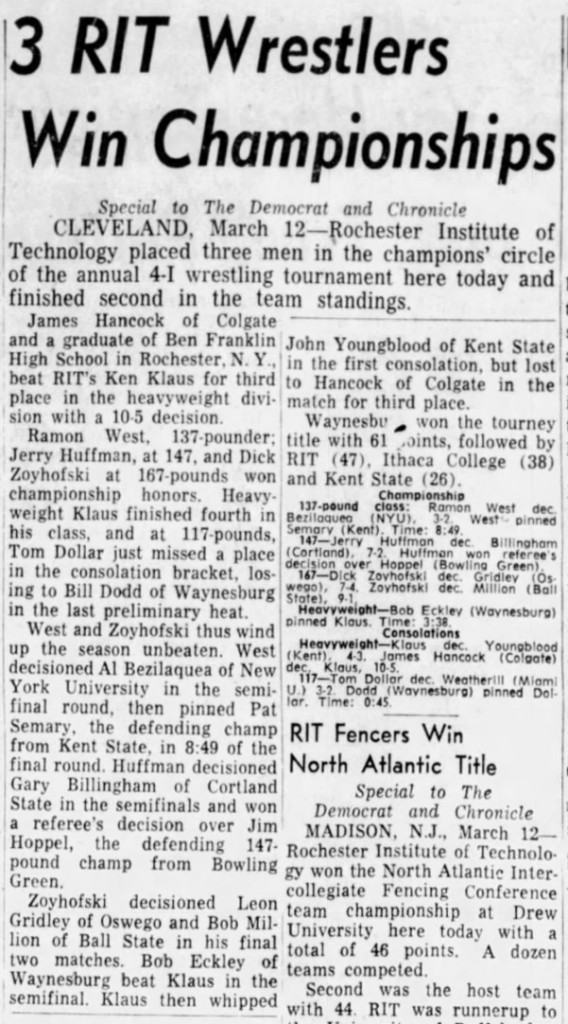 Jerry Huffman (RIT) > Jim Hoppel (BGSU) referee's decision