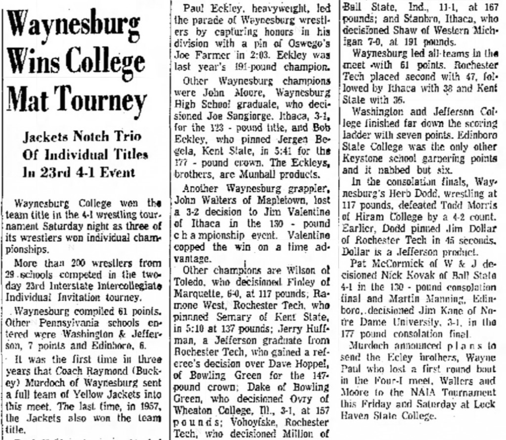 Bob Dake (BGSU) > Bob Oury (WC) decision 3-1