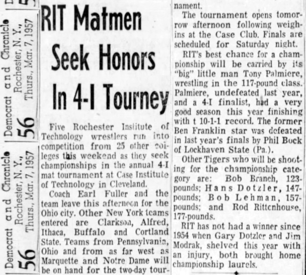 Ed Nicholson (Oswego) > Bob Lehman (RIT) decision 9-7
