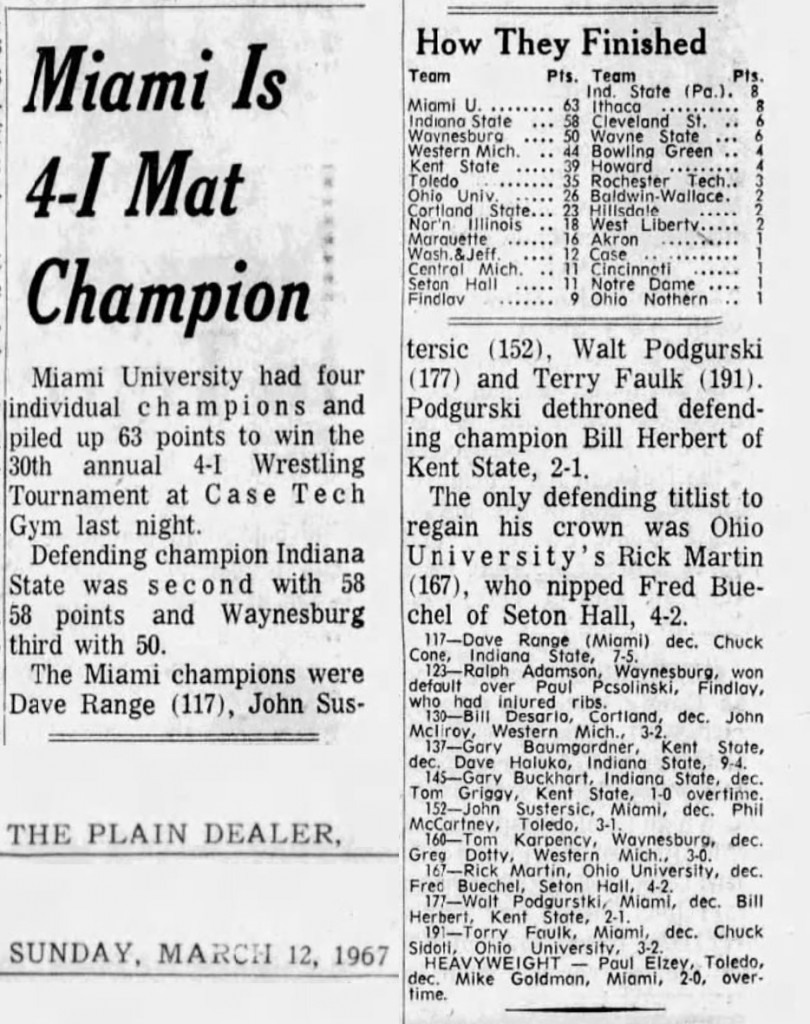 Dave Range (MU) > Chuck Cone (ISU) decision 7-5
