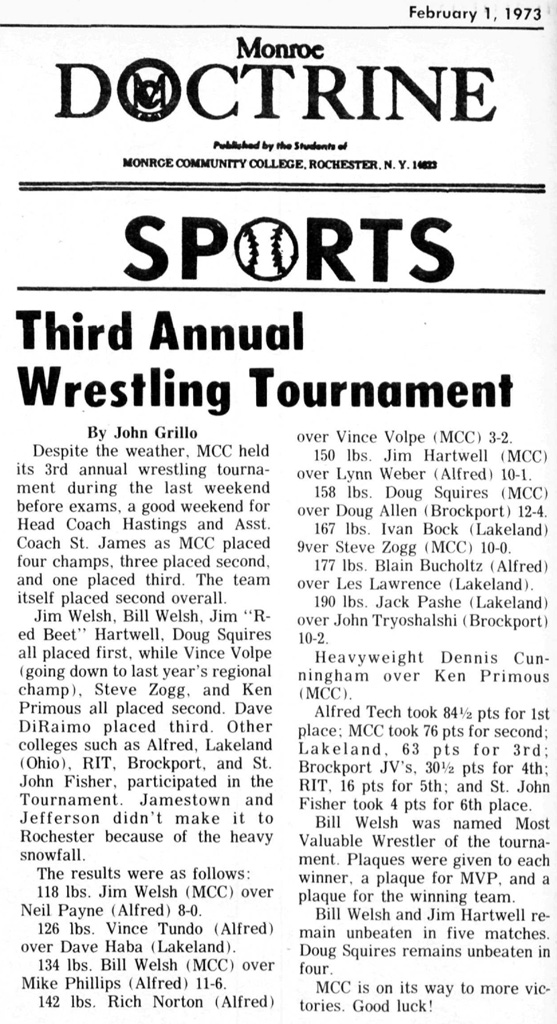 3rd Annual Monroe Community College Invitational Wrestling Tournament