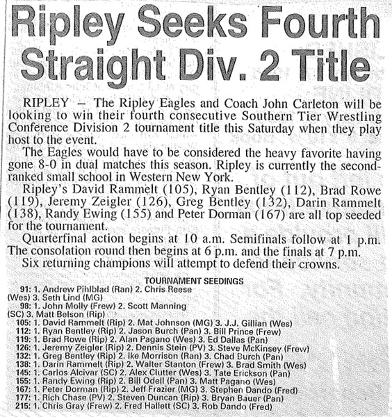 98 John Molly (Frewsburg) > Matt Belson (Ripley) decision 10-7