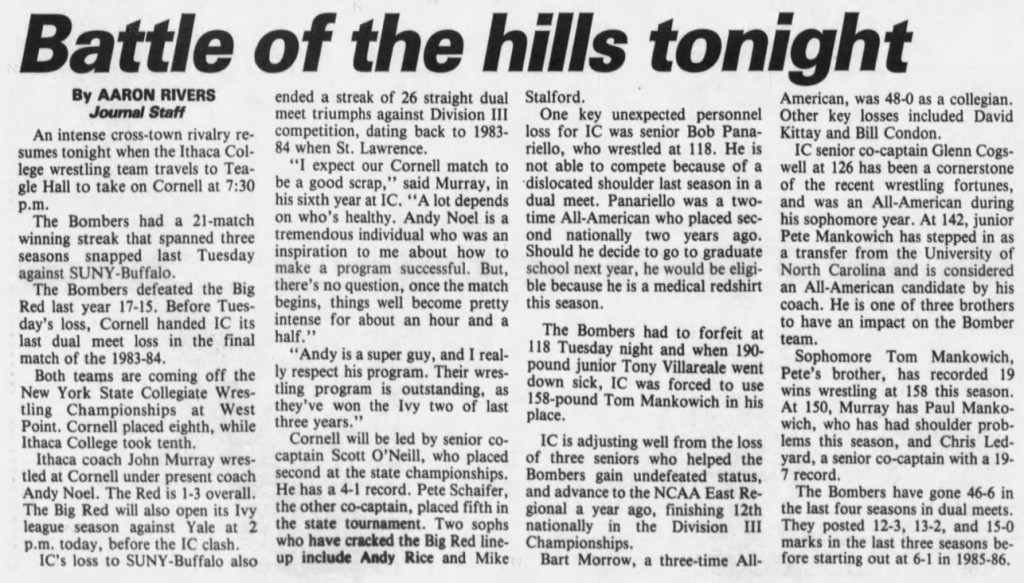 Ithaca College  27, Cornell University 16