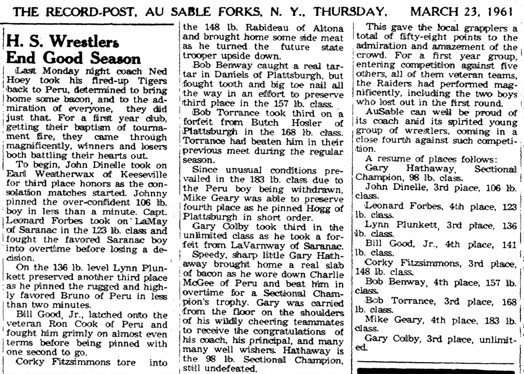 Bob Bessette (Peru) > Tom Tyner (Plattsburgh) fall