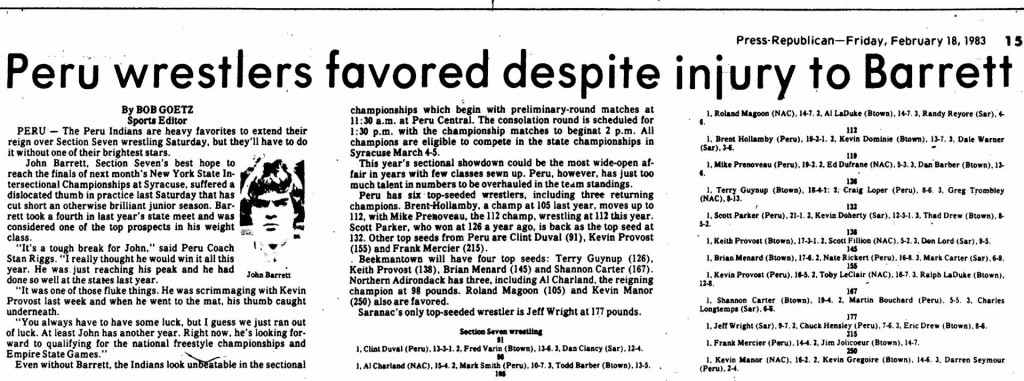 Dan Clancy (Saranac) > Mark Smith (Peru) fall 1:51