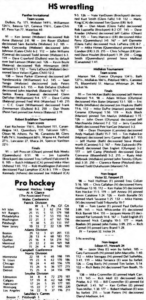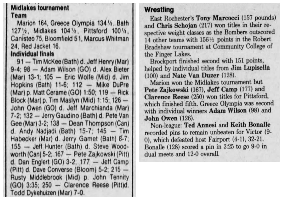 Jeff Camp (Pittsford) > Dave Converse (Bloomfield) decision 5-2