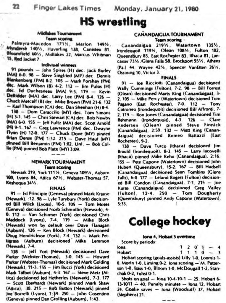 Dominic Caraccilo (Mynderse) > Tom Simons (BH) decision 3-1