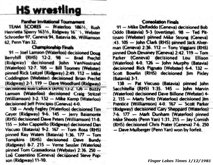 91 Mike DeRaddo (Geneva) > Bob Oddo (Batavia) decision 5-3 (1OT)