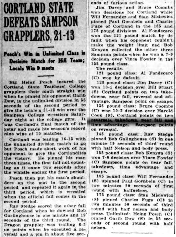 Heinz Posch (Cortland) > Garib Dow (SC) fall 3:55