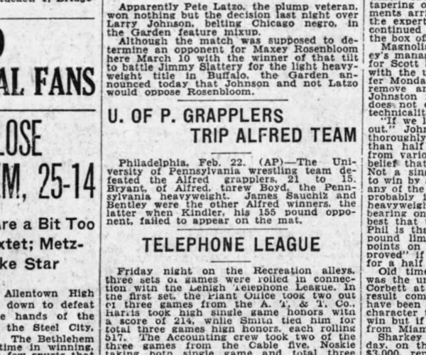 Gene Bryant (AU) > Bob Boyd (UP) fall 3:20, fall 2:50