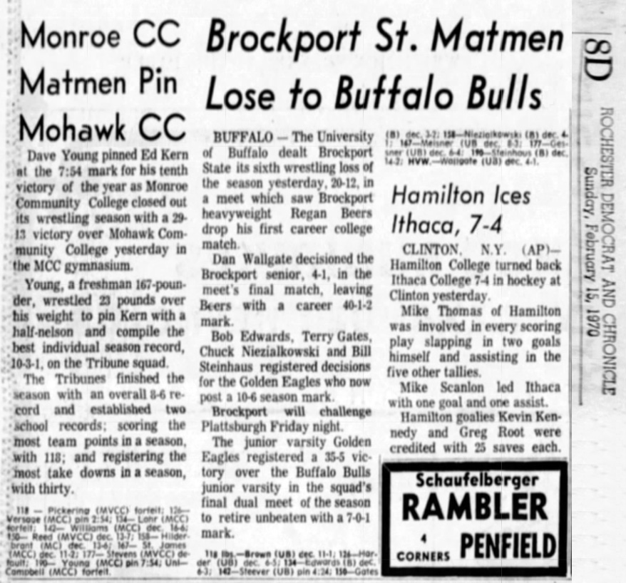 190 Bill Steinhaus (Brockport) > Larry Madden (UB) decision 14-2