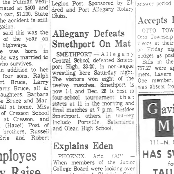 Allegany [NY] vs. Smethport [PA]
