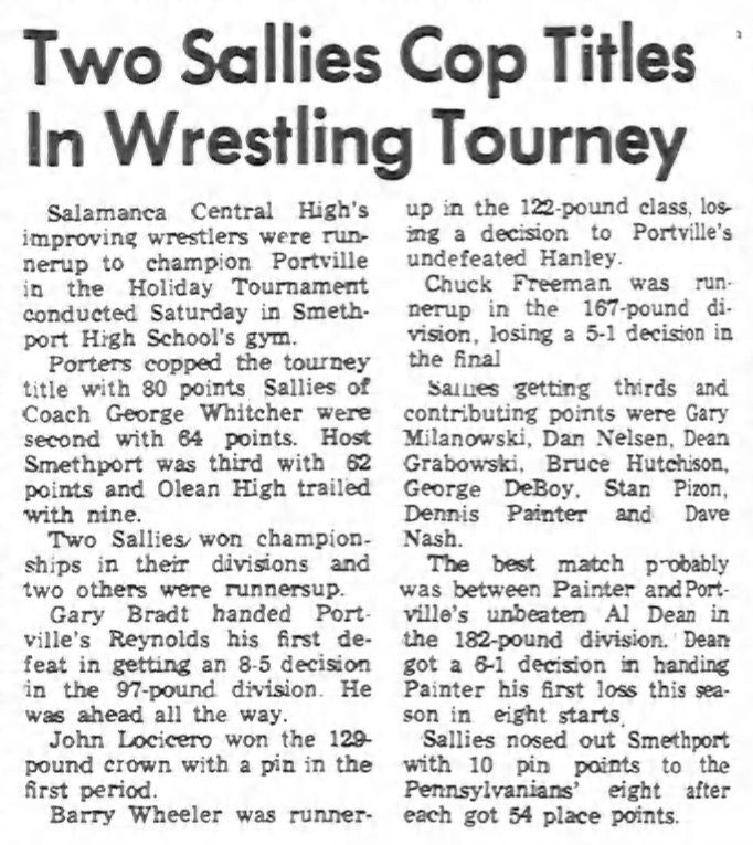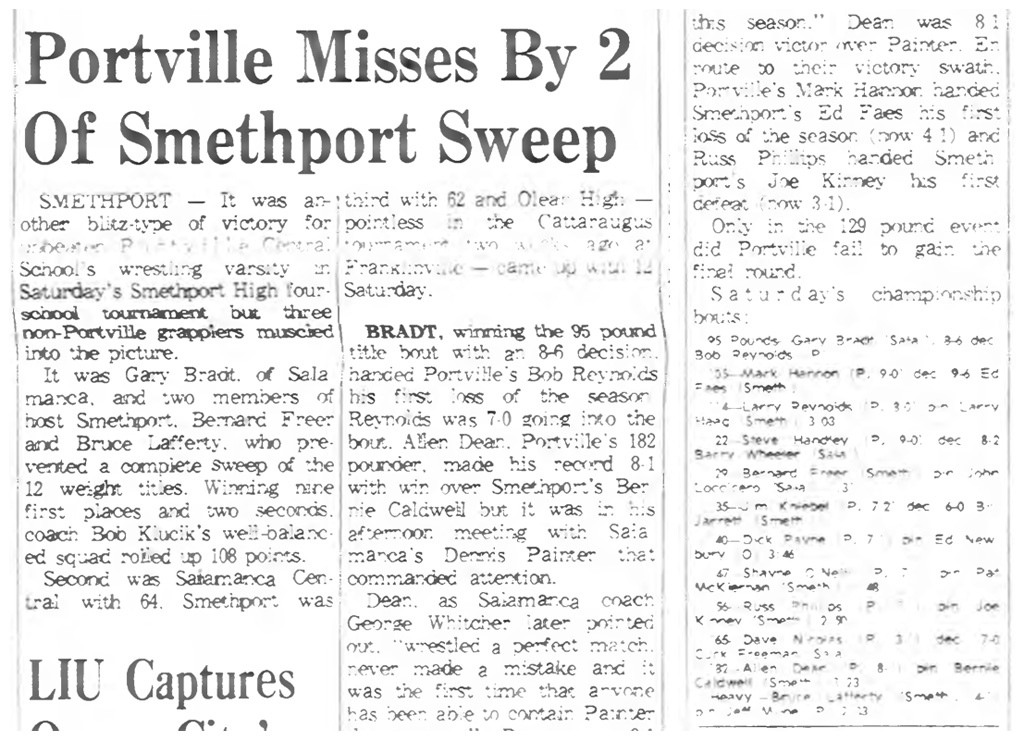 Gary Bradt (Salamanca) > Bob Reynolds (Portville) decision 8-6