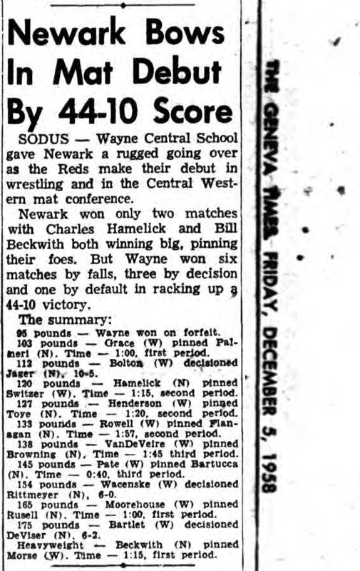 127 Don Henderson (Wayne) > Bob Toye (Newark) fall 3:20