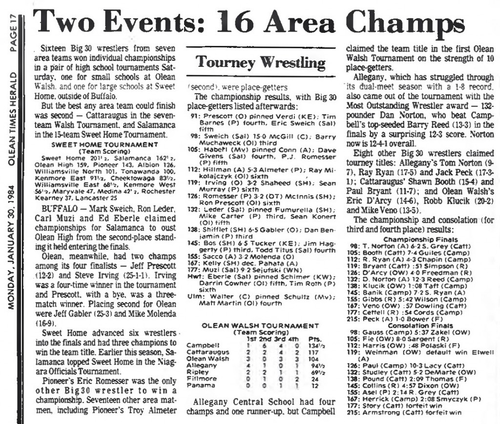 Dan Norton (Allegany) > Barry Reed (Campbell) major decision 12-3