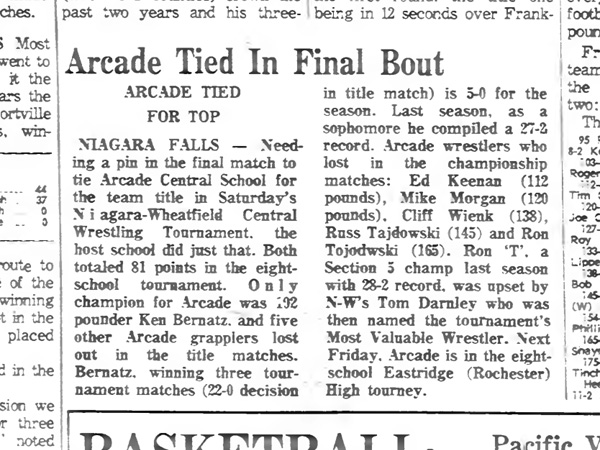 Ken Bernatz (Arcade (Pioneer)) > Ken Spurrier (Amherst) decision 9-4